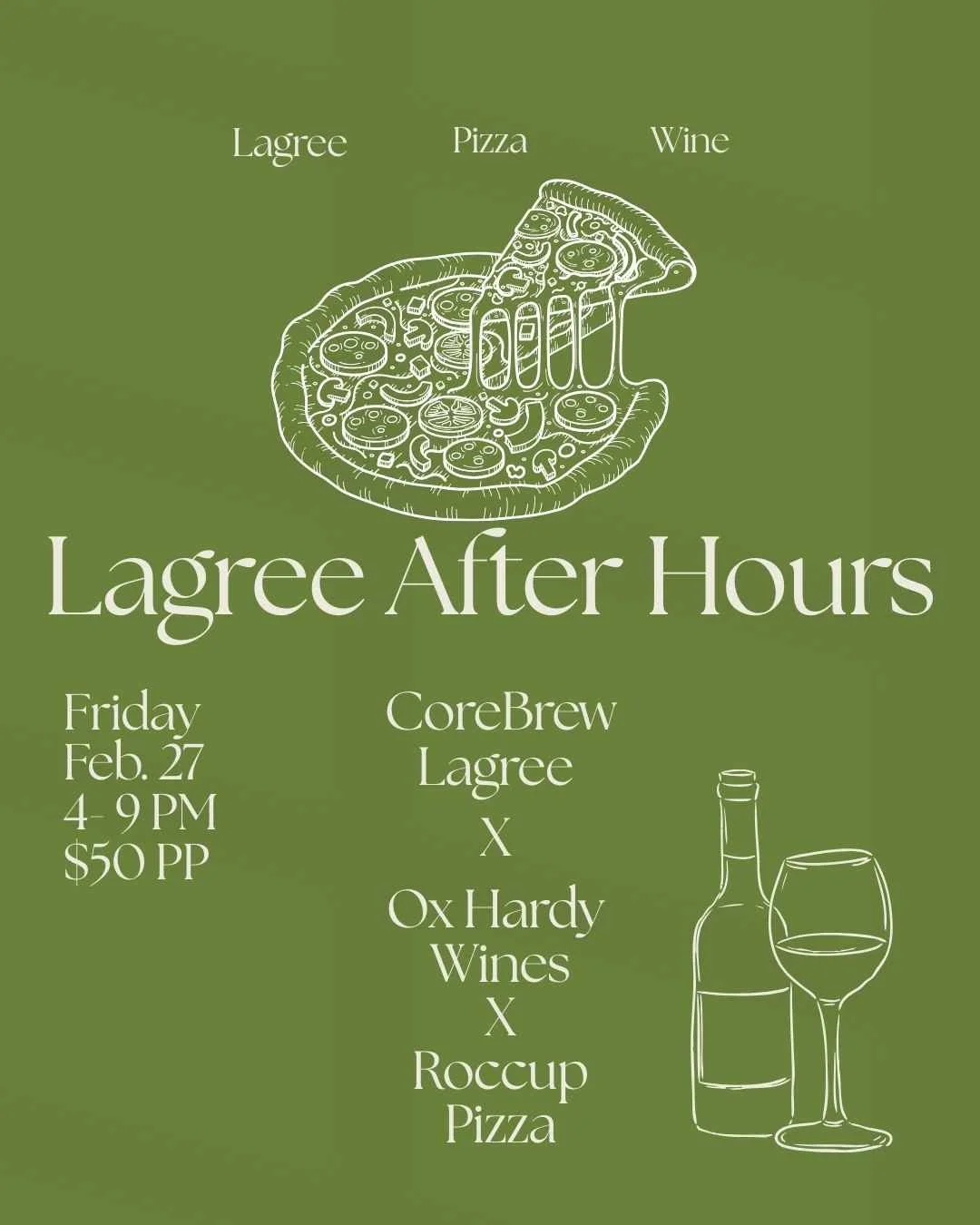 Lagree After Hours is back again with our Pizza and Wine night! Courtesy of Roccup Pizza and Ox Hardy Wines supplying the after sweat sesh goods!